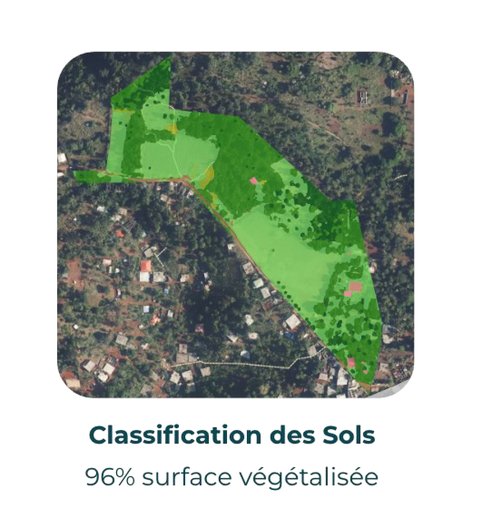 This approach enabled us to establish a detailed soil classification, distinguishing between vegetated areas, built-up areas and road infrastructures. These data were used to estimate carbon stocks and sequestration capacity, integrating above-ground, root and soil carbon biomass.