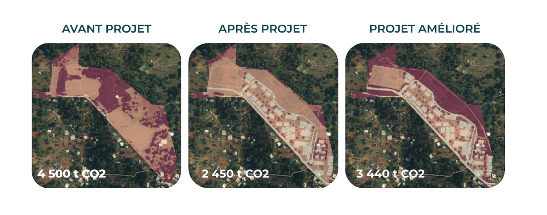 Thanks to the project simulation, Netcarbon was able to suggest areas for improvement, in particular identifying areas where vegetation could be reinforced. It was thus recommended to add 50 trees to the 227 initially planned, in order to compensate for the reduction in wooded area from 96% to 75%. This adaptation would limit the loss of carbon stock to 10% instead of 40% in the original version of the project.